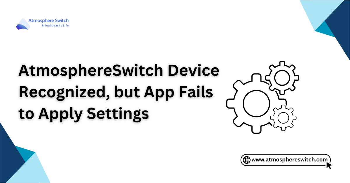 An AtmosphereSwitch device is recognized, but the app fails to apply settings, which is typically a symptom of a “partial handshake” where the host PC sees the client device but cannot speak its language.